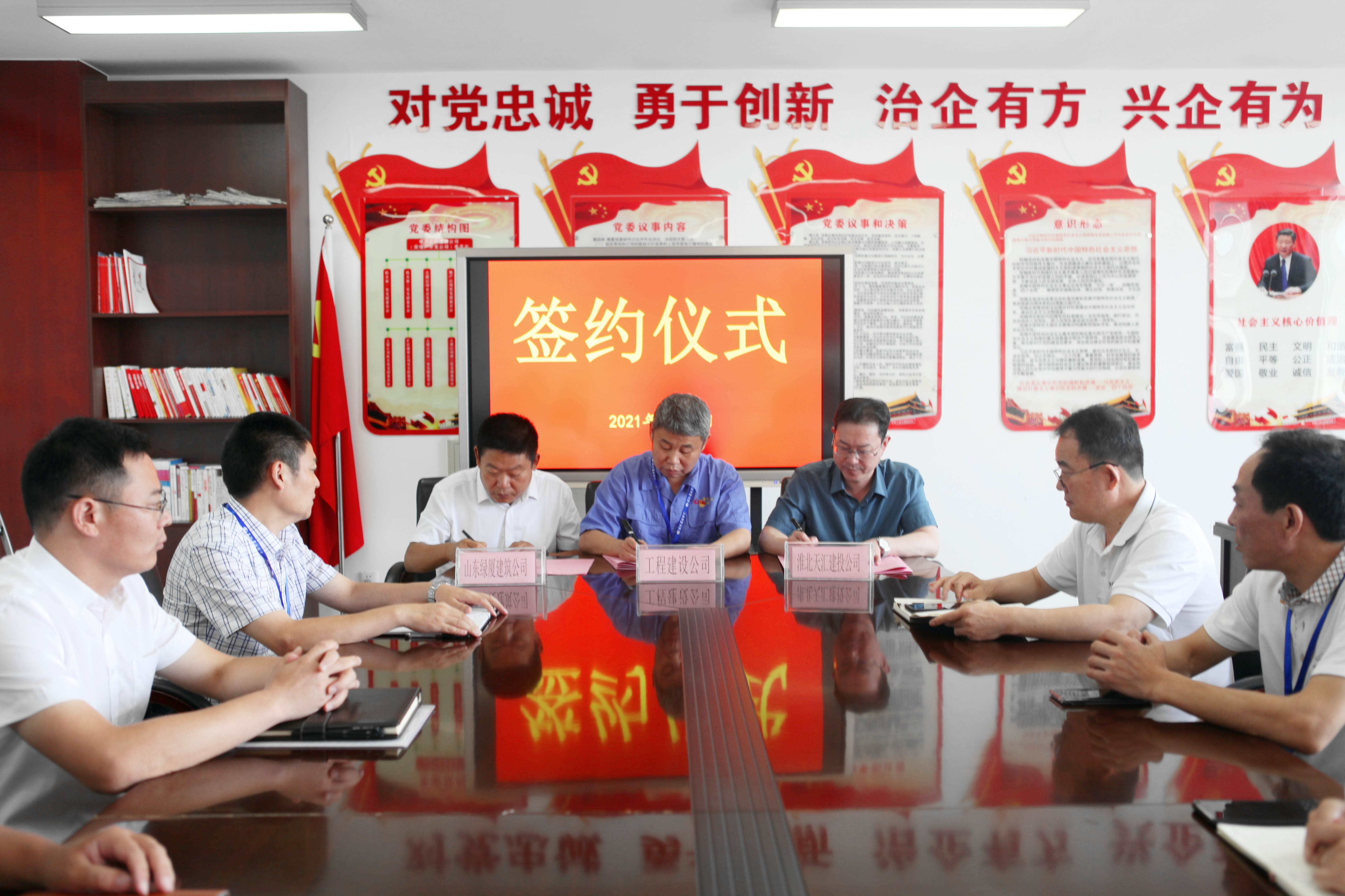 30 07月2021 了解詳情 天匯建投與淮北礦業(yè)(集團(tuán))工程建設(shè)有限責(zé)任公司、山東綠廈建筑科技有限公司簽署《投資合作意向書》 7月30日上午,集團(tuán)公司與淮北礦業(yè)(集團(tuán))工程建設(shè)有限責(zé)任公司、山東綠廈建筑科技有限公司就合資成立新公司簽署《投資合作意向書》,集團(tuán)公司董事長(zhǎng)李飛出席此次簽約儀式。